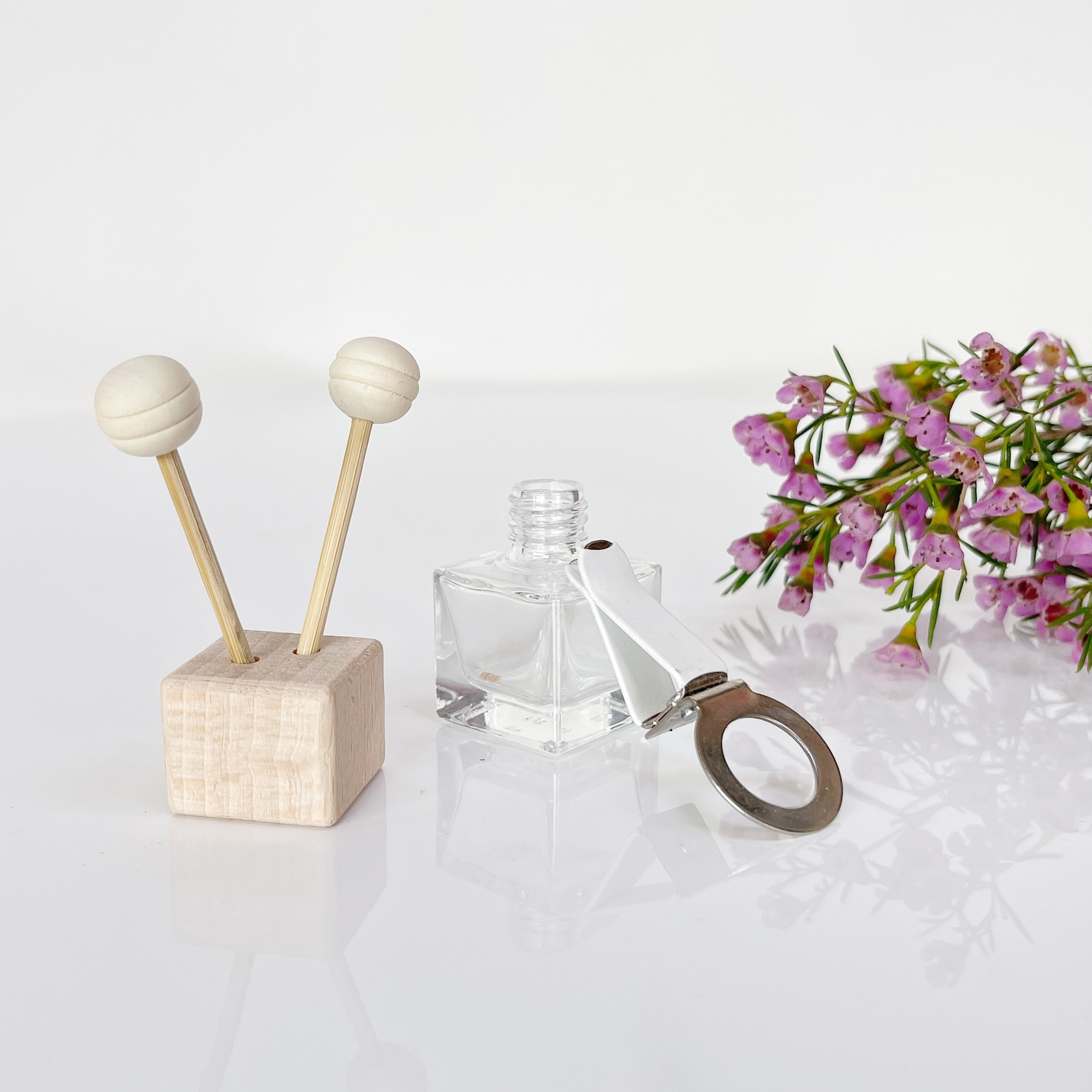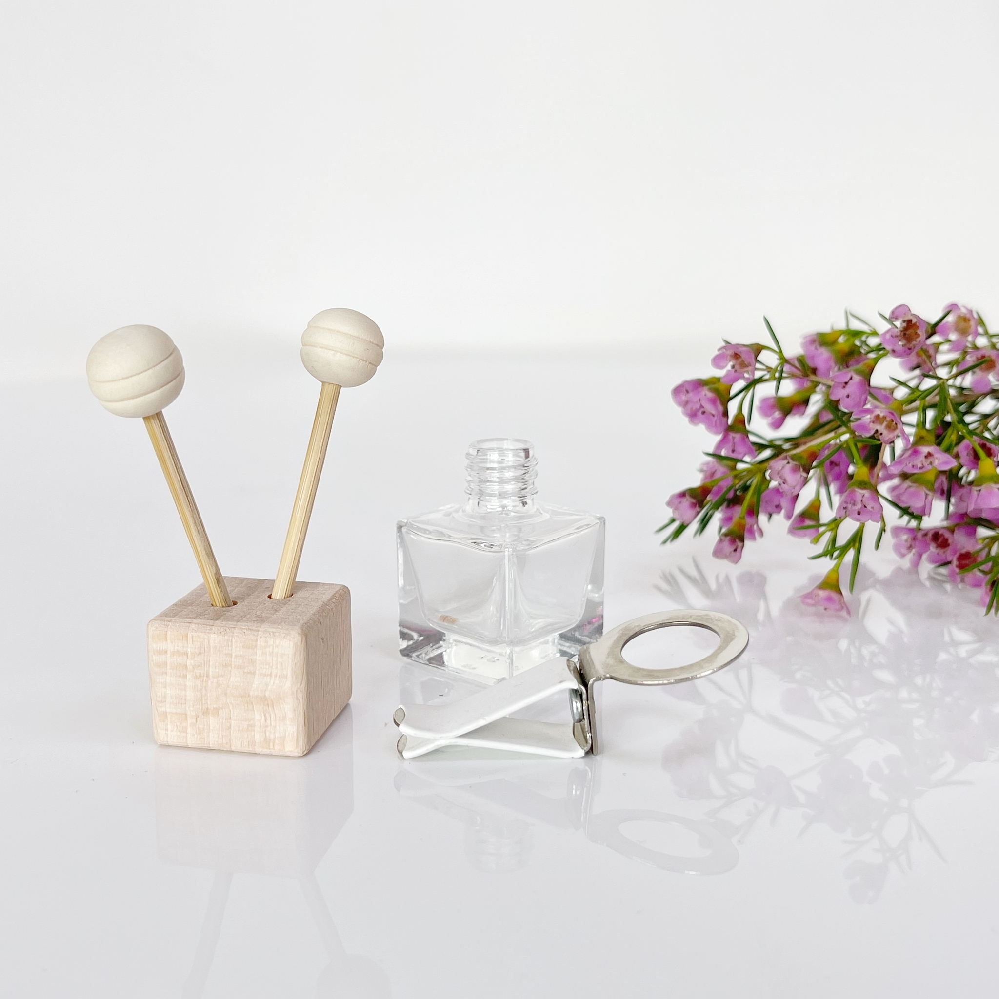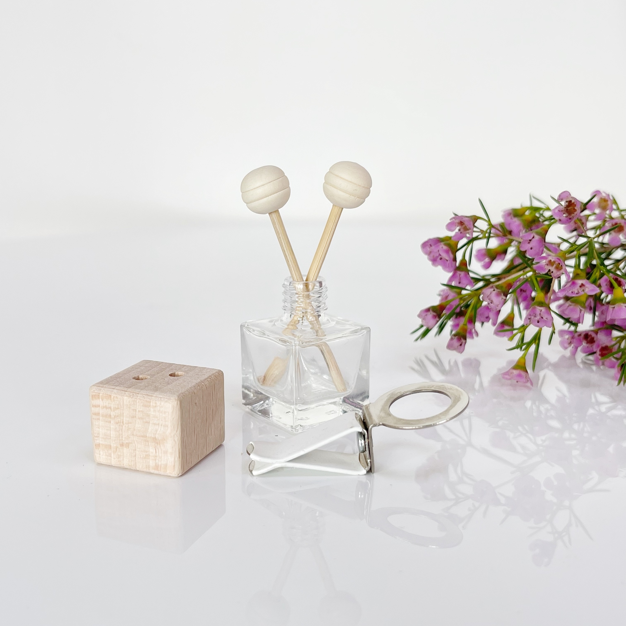 Пустые флаконы  для автомобильного ароматизатора объемом 8 мл - отличное решение для создания уюта в  авто. Cтеклянный флакон из каталога с креплением на дефлектор придаст стильности, а прочное стекло и деревянная крышка обеспечат долговечность и добавят нотку природы. Классический дизайн сделает поездки еще более комфортными, а украшение интерьера этим аксессуаром будет легким и элегантным!
