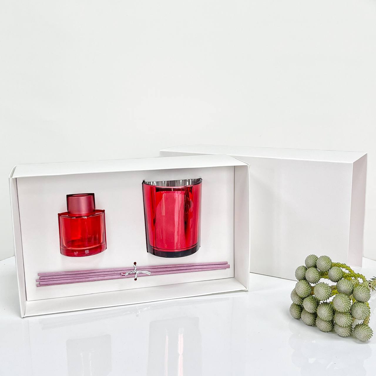Описание: Белая матовая коробка с ложементом. Элегантный дизайн и удобная конструкция позволяют создать идеальный комплект для подарка свечи с диффузором.
