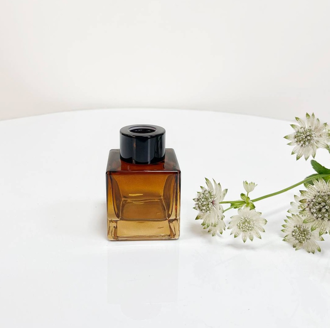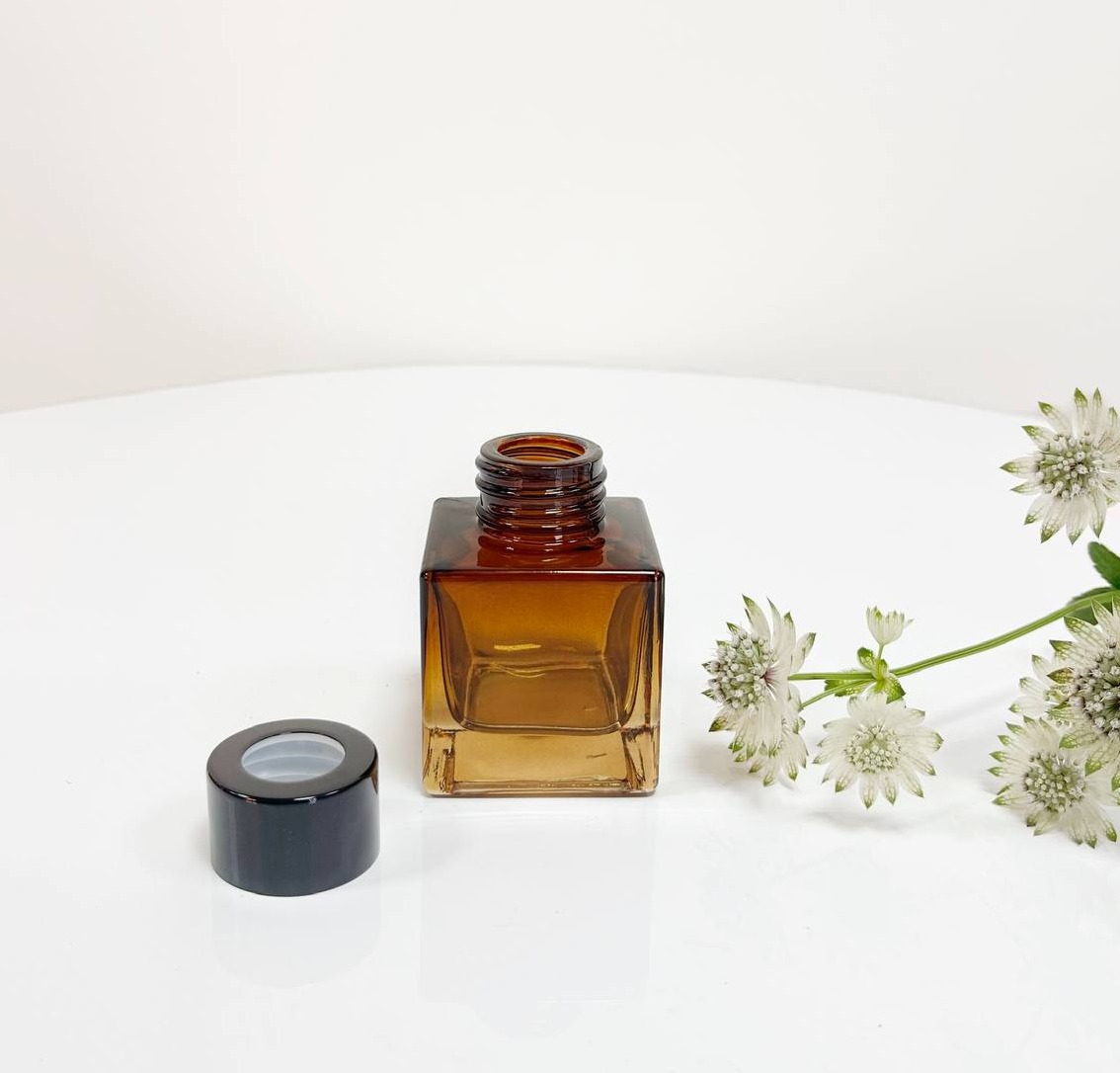 Стеклянный  флакон квадратной формы имеет цвет градиент, специально предназначенного для диффузоров. Флакон изготовлен из качественного  стекла и имеет объем 50 мл. Для удобства использования флакон оснащен заглушкой, которая поможет избежать непредвиденных проливаний. Колпачок доступен в двух вариантах цвета: черном и золотом, что позволит вам выбрать наиболее подходящий вариант для интерьера. Стеклянный флакон для диффузоров является идеальным выбором для создания атмосферы релаксации и комфорта в вашем доме, а также прекрасным подарком для близких людей.