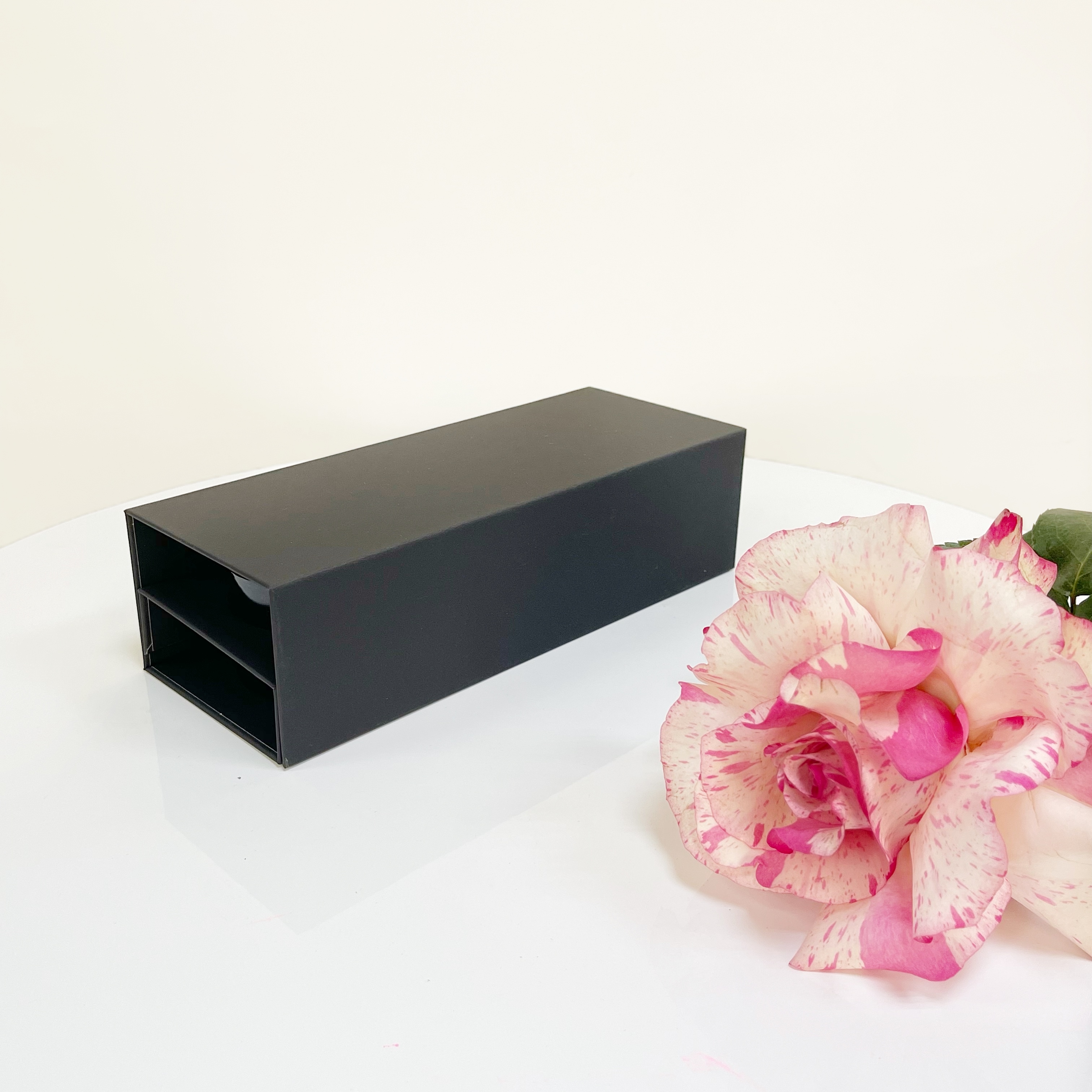 Изготовлена из прочного картона с покрытием Real Touch, она обеспечивает надежную защиту содержимого от повреждений. Черный цвет придает ей элегантность и привлекательность.