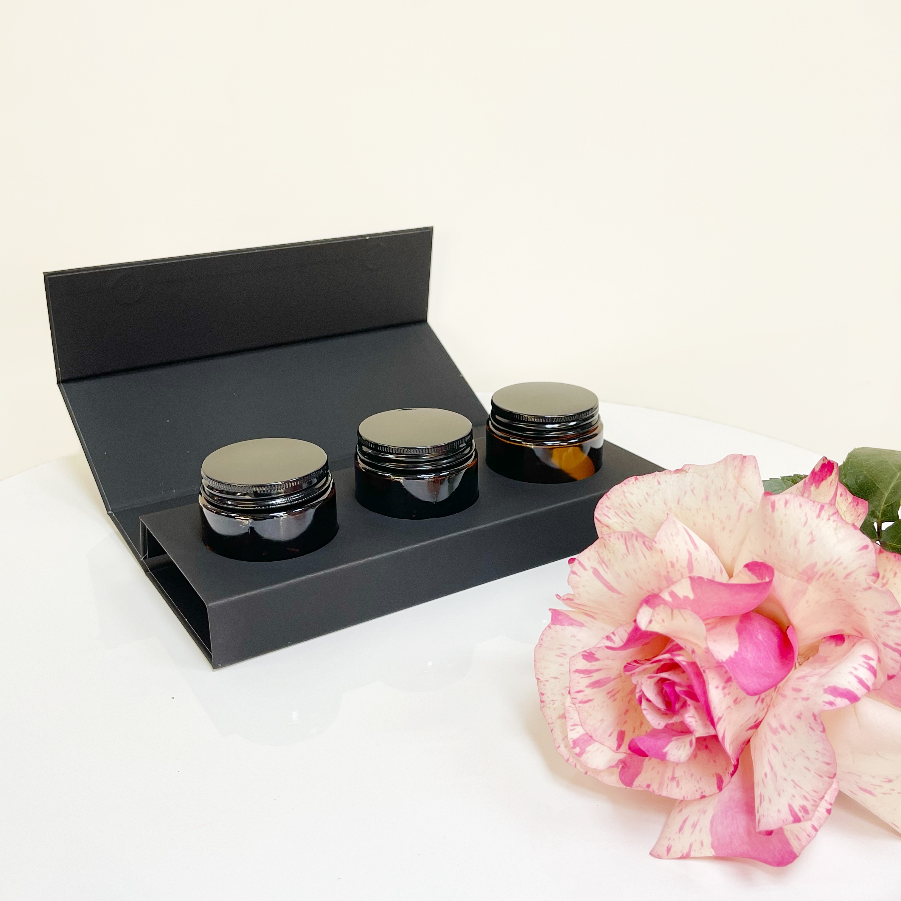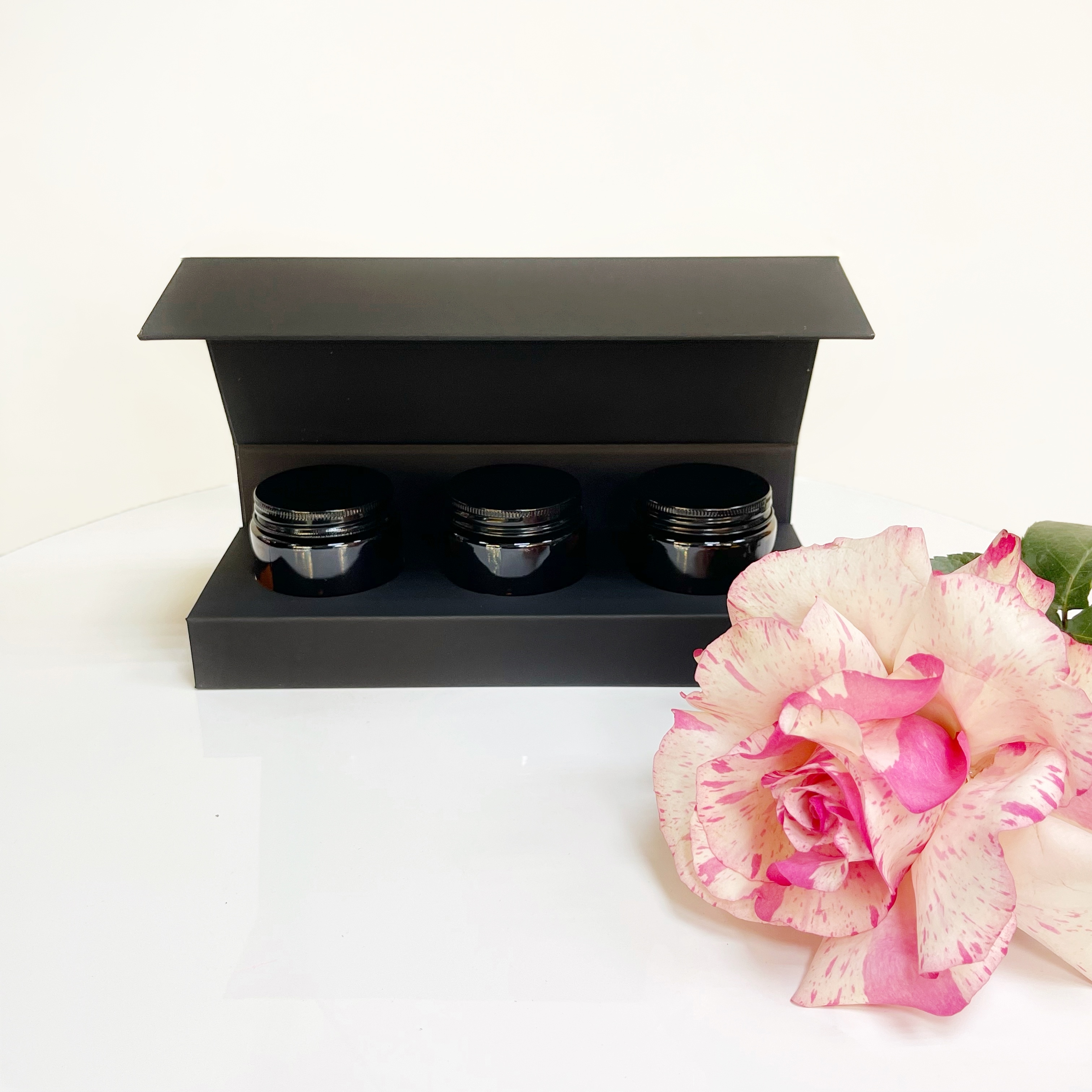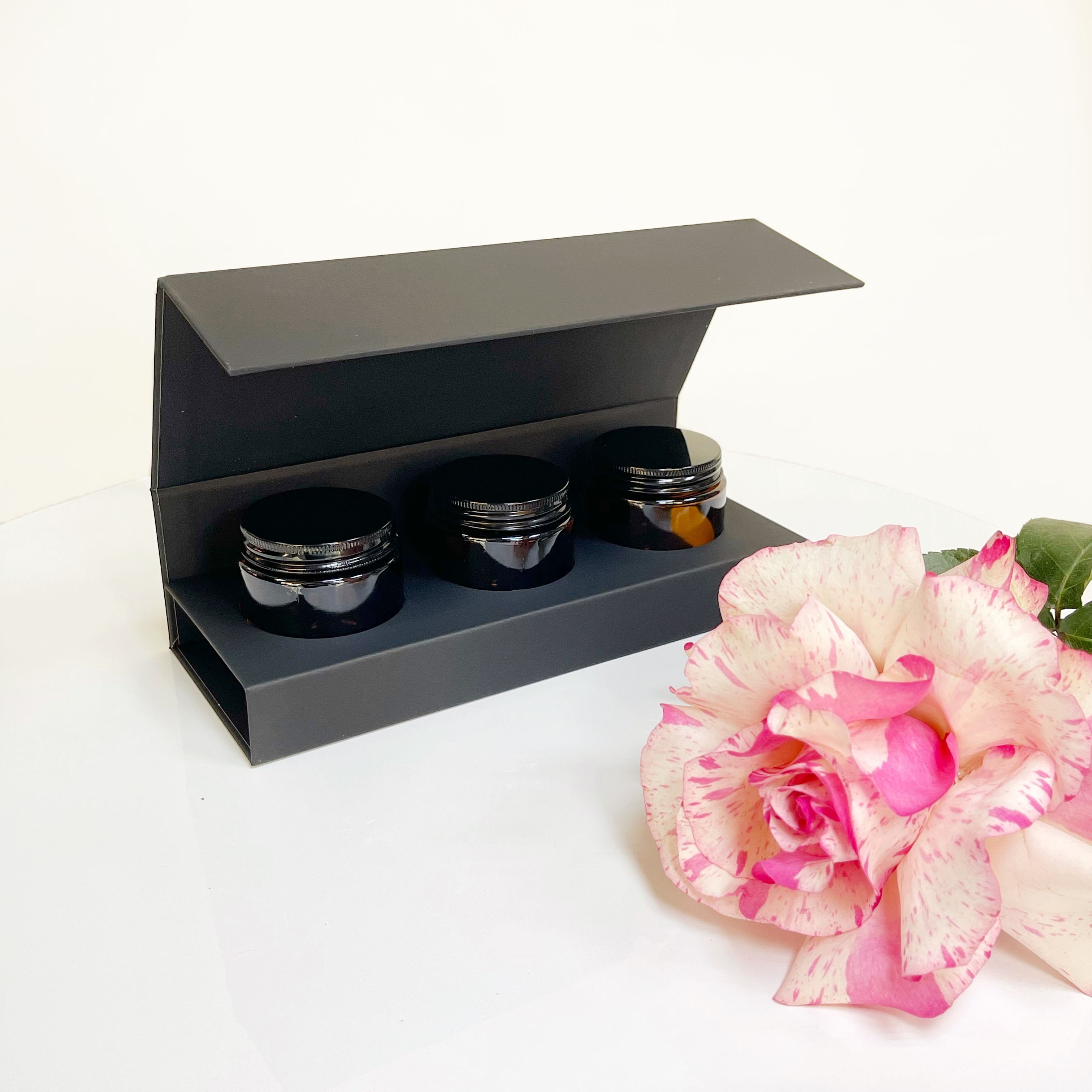 Коробка состоит из 1-ой части на магнитах  и диаметтром отверстия 63мм - идеальное решение для упаковки 3-ох свечей в банке или косметические средства .