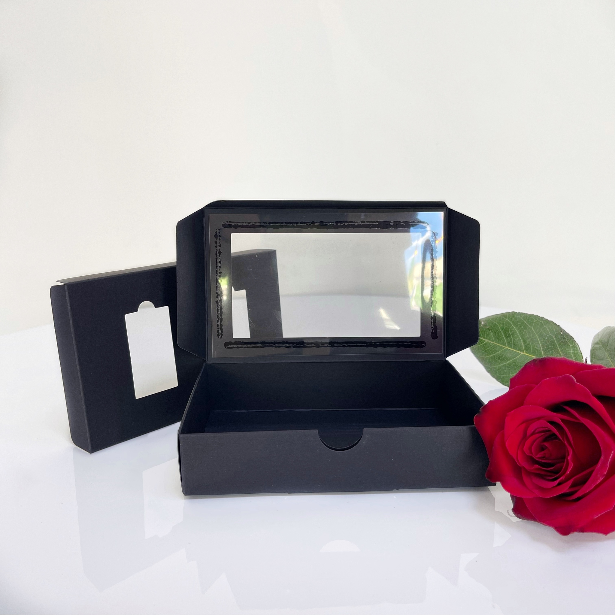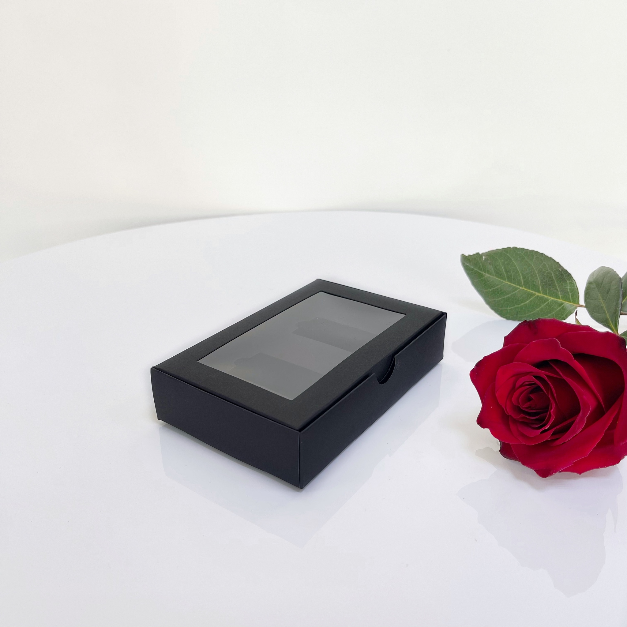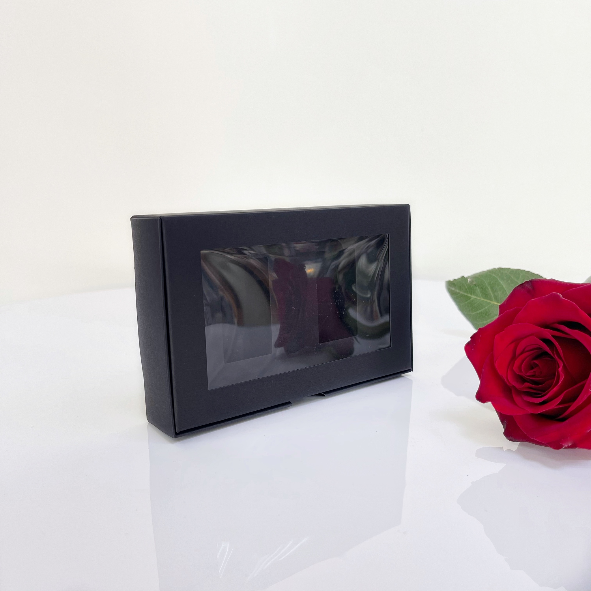Черная картонная коробка с окошком идеально подойдет для упаковки 2 авто флаконов. Наша премиальная коробка обладает привлекательным черным матовым цветом, который делает ее элегантным дополнением к вашим товарам. Окошко привлекает дополнительное внимание покупателей и добавляет возможность показать товар не вскрывая упаковку. Материал - картон. Легко собирается без клея.