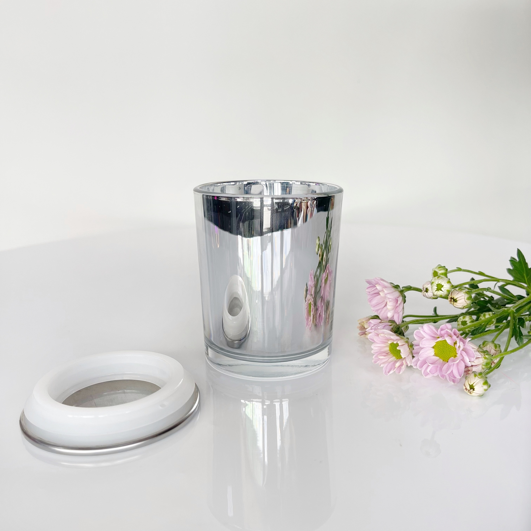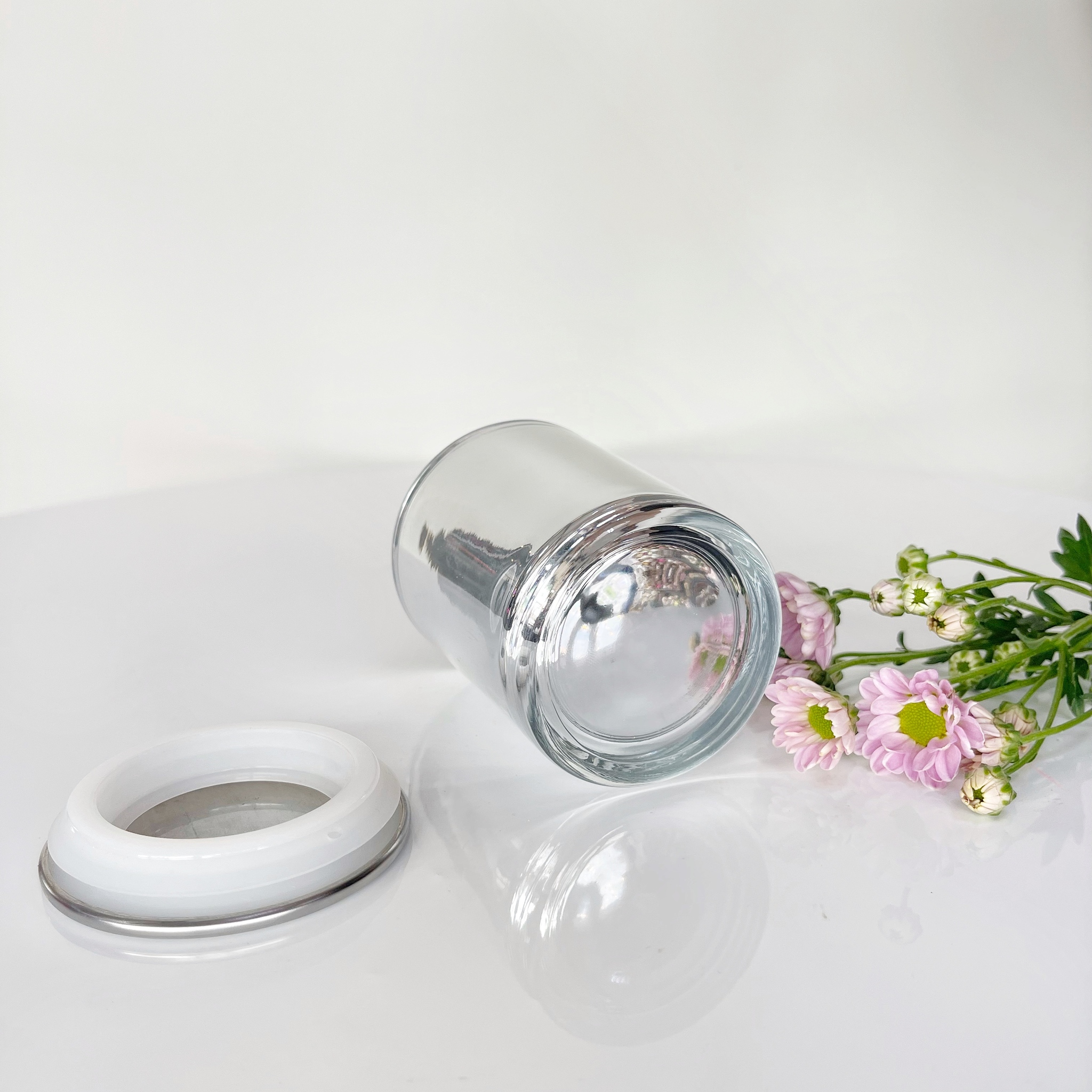 Стеклянный зеркальный стакан серебренного цвета с наружи и серебряного внутри, без рисунка с металической крышкой идеально подходит для свечей и способен выдерживать высокие температуры за счет особого состава, обеспечивая безопасное и долговечное использование. Вместительность стакана 190 мл. Крышка с уплотнителем герметично закрывается, сохраняя аромат и предотвращая проливание. Стильный внешний вид сделает стакан для свечей прекрасным дополнением к вашему интерьеру или идеальным подарком для любителей декоративных свечей.